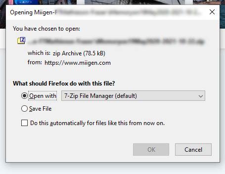 You will also notice a red ‘Cancel Download’ button which reverts the display back to the default setting. What to do when the images finish downloading and how to save to your deviceDownloading a set of images can take a while so when Miigen has finished processing the list of images you have asked to download, a browser dependent box will appear asking you what you would like to do next. Each browser acts slightly differently to one another. Firefox