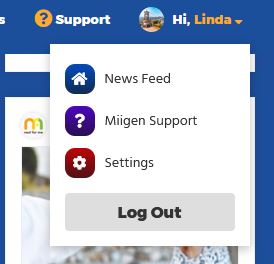 1) Log into your Miigen account and from any page, click your profile picture/name and select ‘Settings‘.