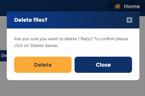 To delete a file from Mii-Vault on Miigen, first start on the Mii-Vault tool page and follow the steps below:1) Find the file that you wish to delete, either search for it or open the folder containing the file.2) When viewing the individual files click on the one you wish to delete. After you click on a file, the toolbar above will highlight blue with alternative buttons displayed, as below.3) To delete click on the delete button within the blue toolbar.4) A popup will display, asking you to confirm deletion